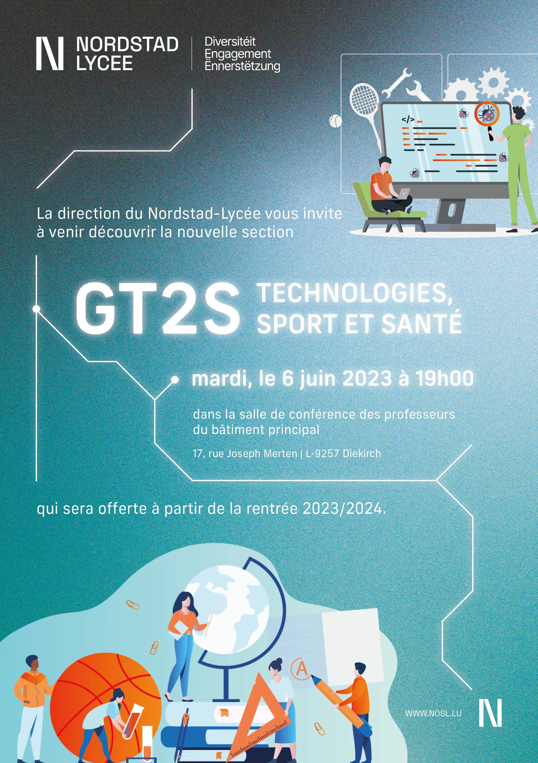 Séance d'information sur la nouvelle section GT2S mardi 6 juin 2023 19:00 20:30 Nordstad-Lycée 17 Rue Joseph Merten Diekirch, Diekirch, 9257 Luxemburg (carte) Google Agenda ICS